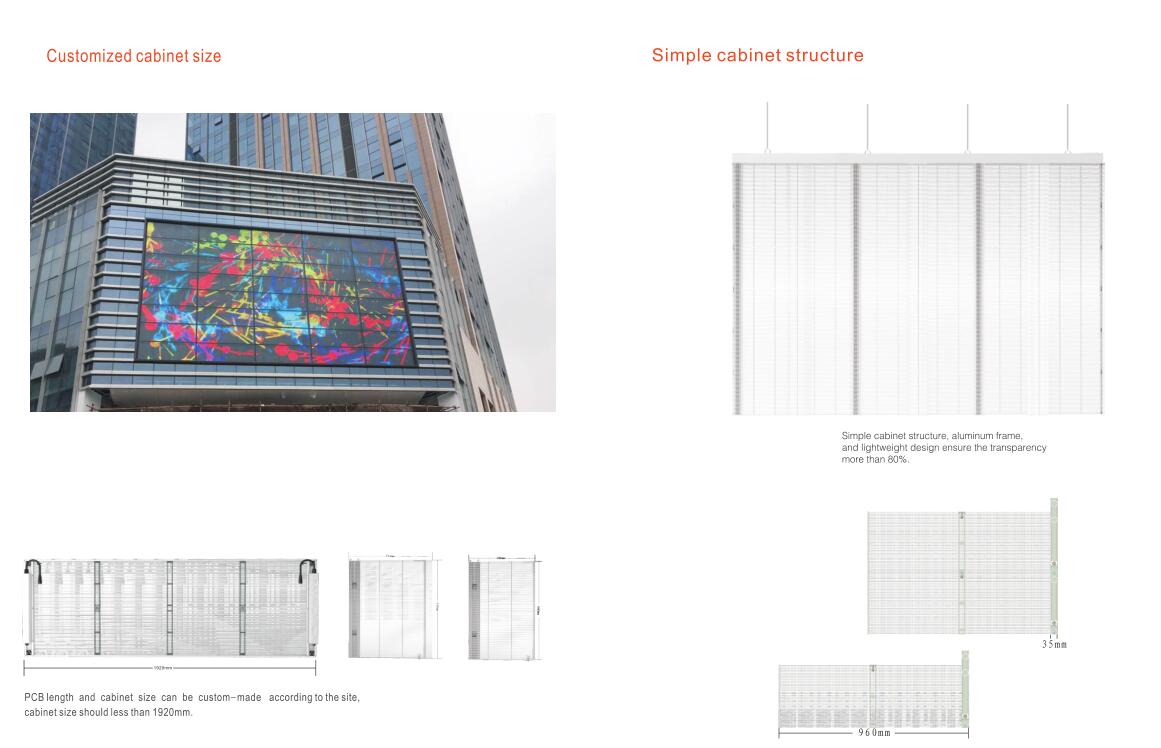 Up to 80% transparency rate could keep the internal natural lighting and viewing, the SMD are almost invisible from a certain distance.